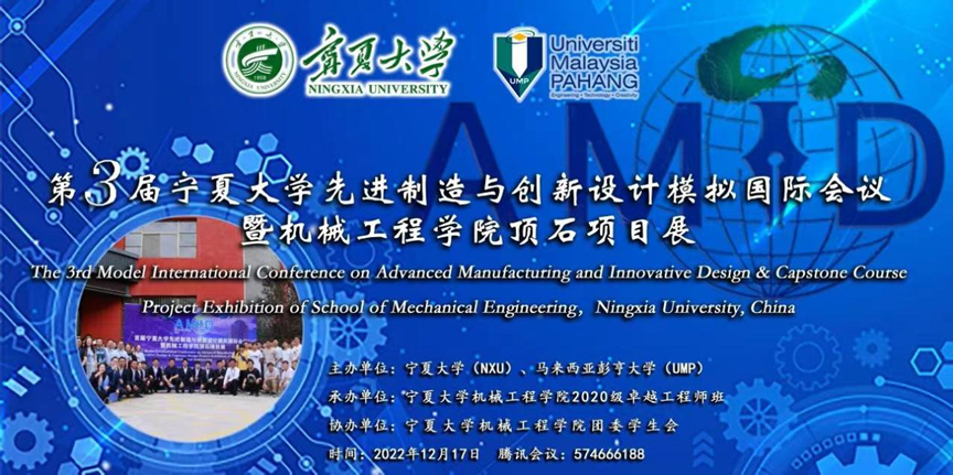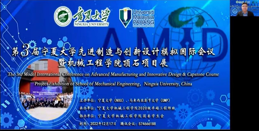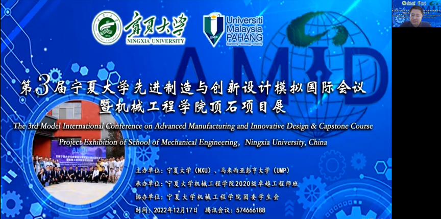2022年12月17日,新葡京官网线上举行了第三届新葡的京集团35222vip先进制造与创新设计模拟国际会议暨新葡的京集团35222vip顶石项目展(The 3rd Model International Conference on Advanced Manufacturing and Innovative Design)。学院执行院长张波、马来西亚彭亨大学学术合作战略中心主任Mohd Ruzaimi Bin Mat Rejab出席会议,学院多名青年教师、彭亨大学博士生马全锦和Nur Khaleeda Binti Romli、马来亚大学硕士研究生孙博等人作为专家、评委和特邀报告者参加会议。会议由新葡京官网2020级卓越工程师班承办,2020级机械工程(卓越工程师)班学生王志坤和彭祖琳主持开幕式和特邀报告。学院本科生和研究生线上踊跃参与会议。