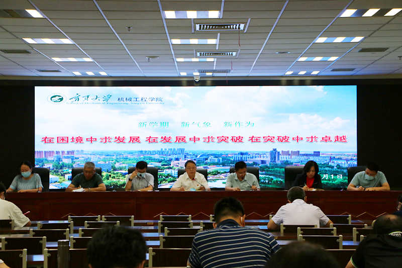 院长张波就8月19日彭志科校长到新葡京官网调研交流情况向大家汇报。他讲到彭校长听完新葡京官网工作汇报后,明确指出了学院发展中的短板,要求学院党政班子要统一思想,下大力气提升学院的教学科研水平,整合现有资源,尽快形成教学科研团队,并加大科研团队绩效考核机制,瞄准自治区九大重点产业,力争在煤化工、新能源装备、智能农业装备、智慧农业等领域,实现机械学科高质量发展。