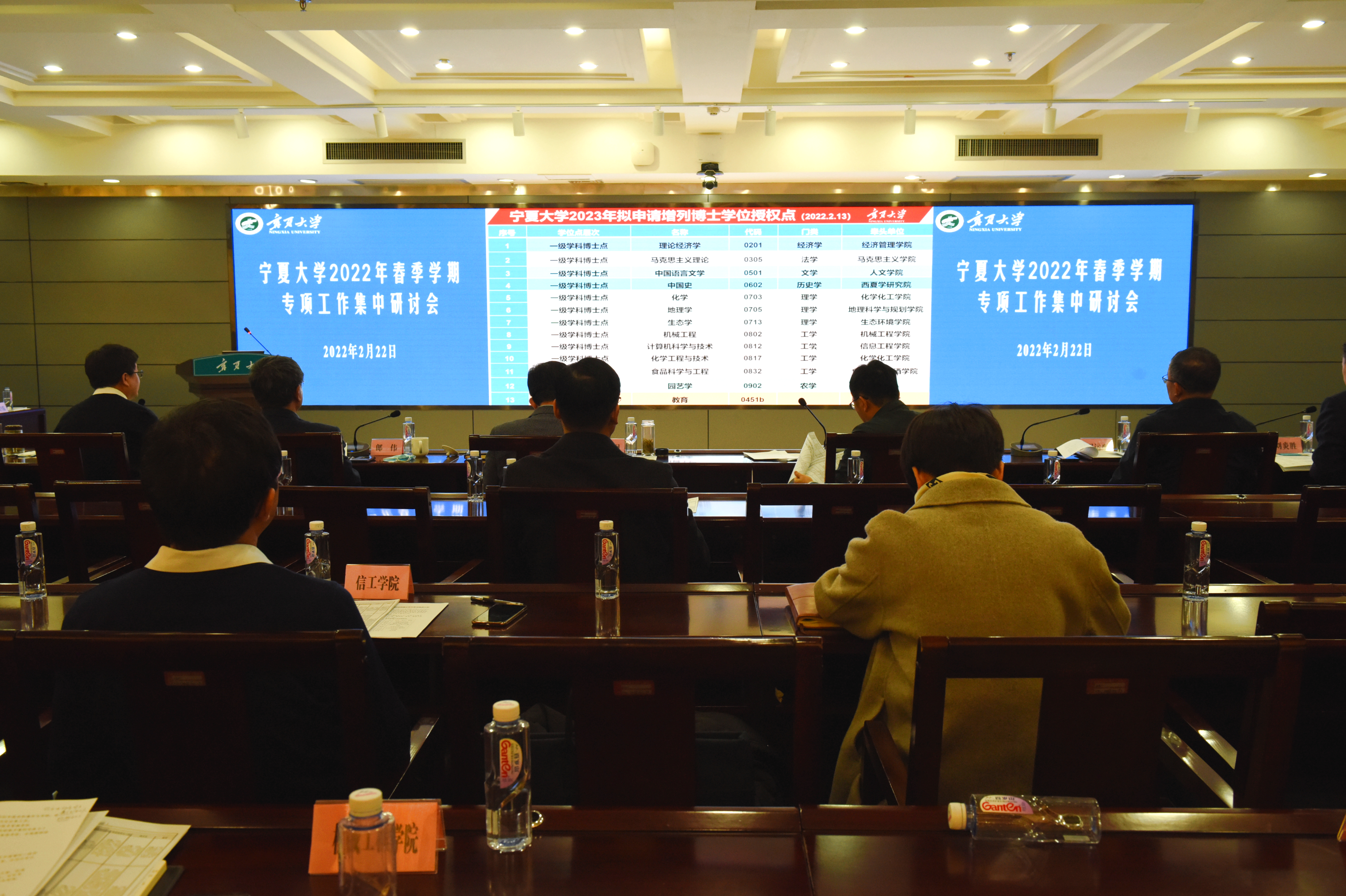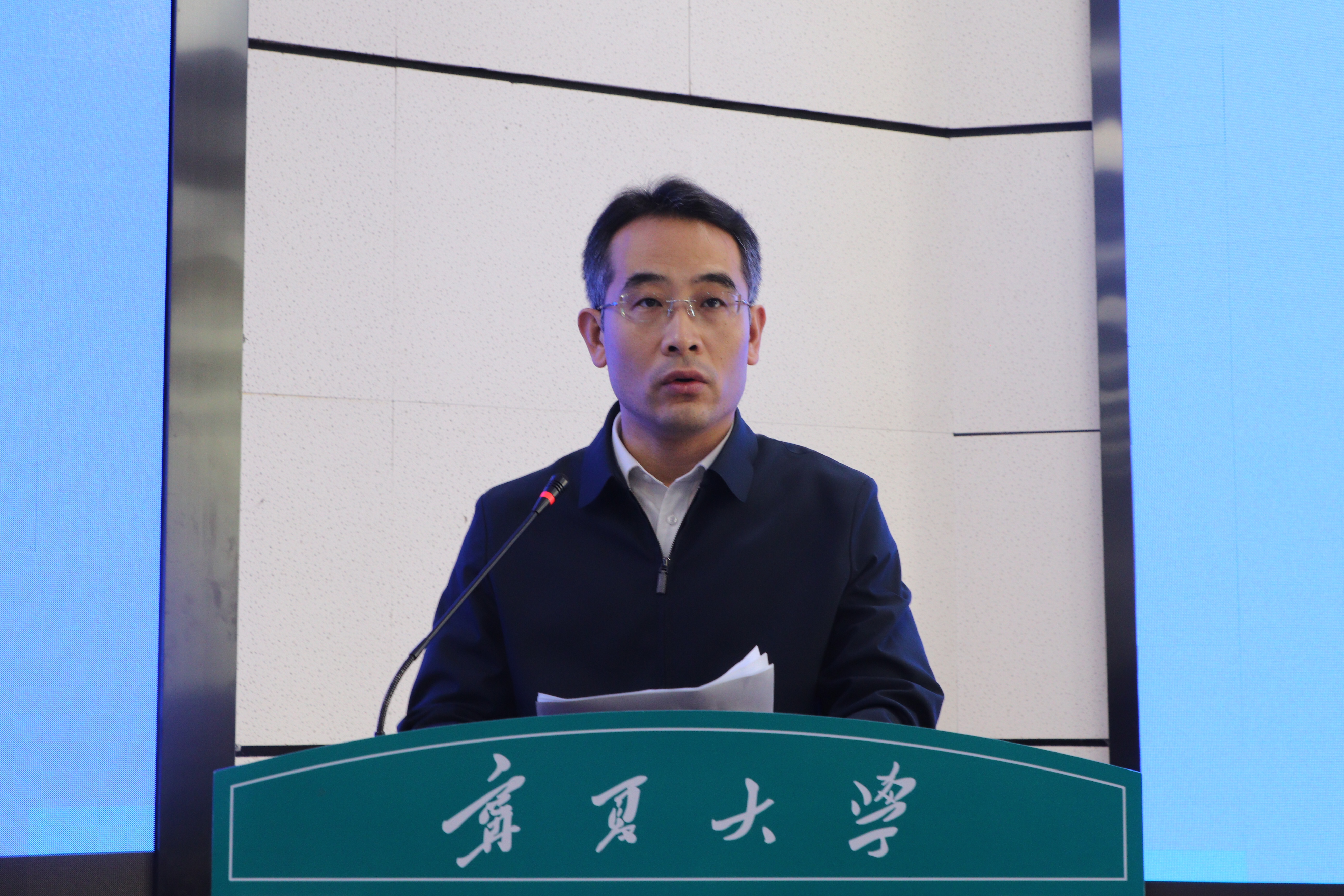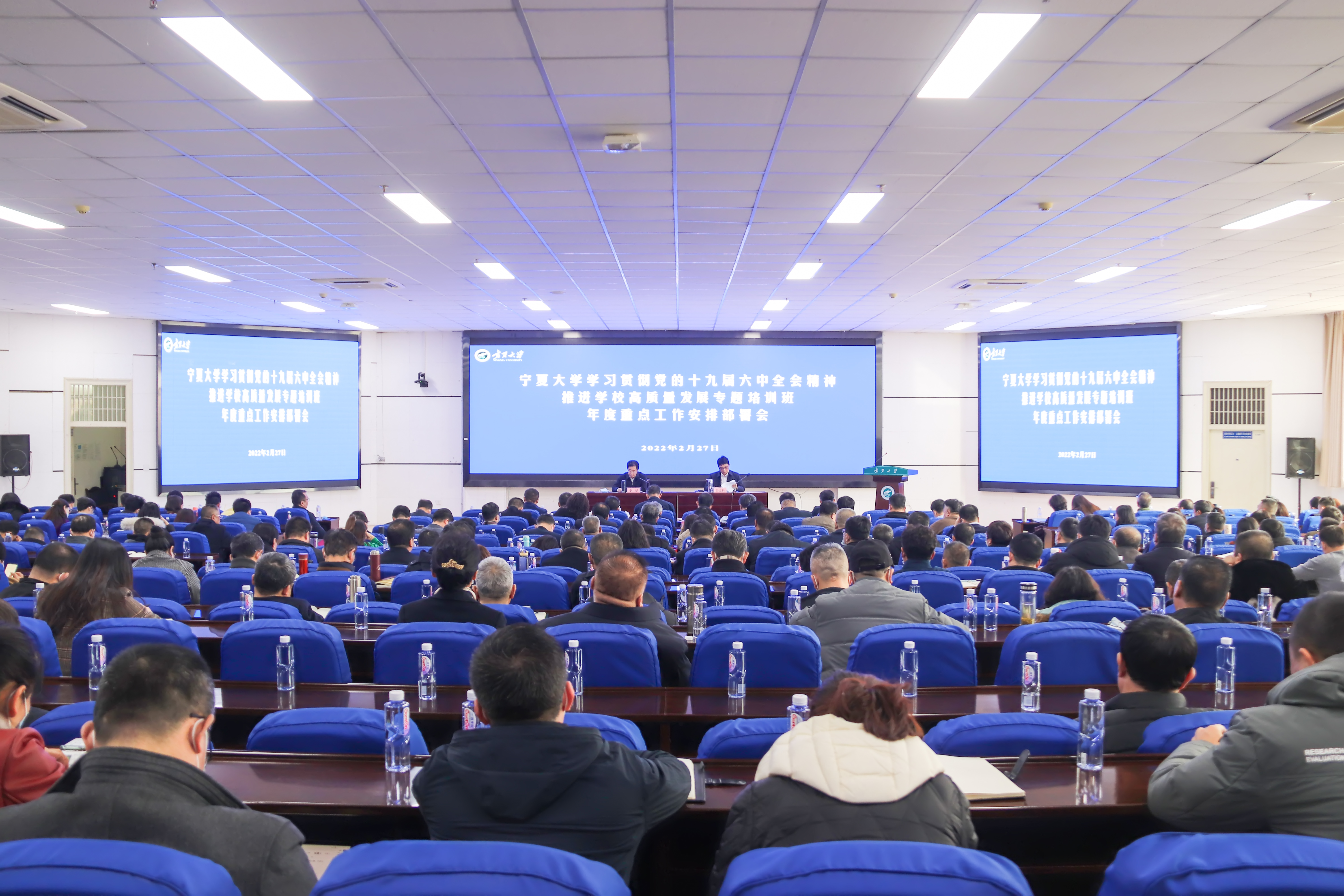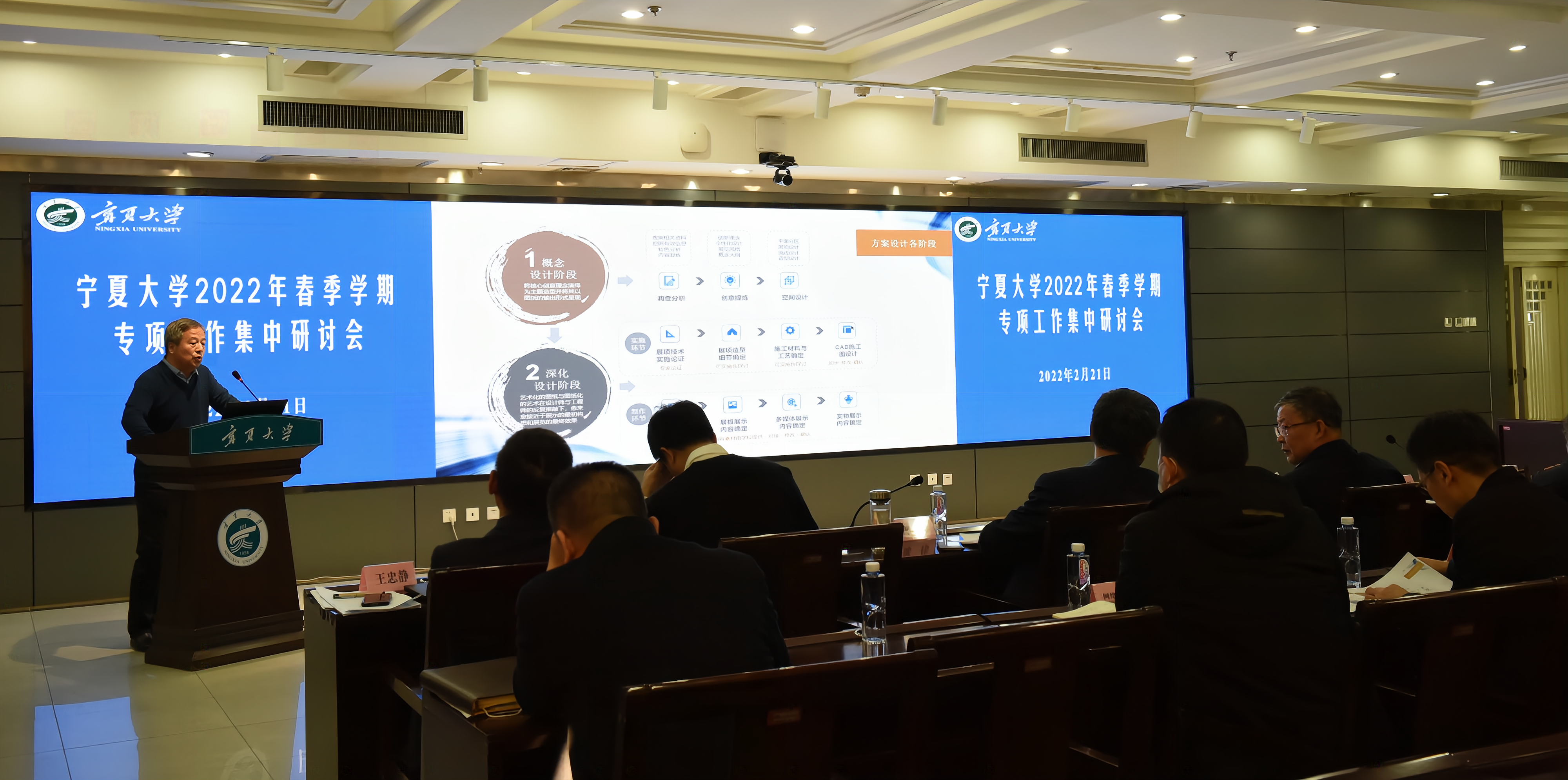 2月27日下午,新葡京官网在贺兰山校区文荟楼东报告厅召开2022年春季学期重点工作部署会。领导班子成员从学校实际出发,结合各自分管领域,紧扣高质量发展主题,聚焦学校2022年建设发展主要任务,安排部署分管领域新学期重点工作。