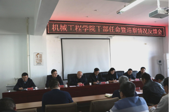 2021年12月15日,新葡的京集团35222vip在512会议室隆重举行干部任命暨巡察情况反馈会。新葡的京集团35222vip党委常委、纪委书记周运生、组织部副部长谭亚云、巡察(督查)办公室主任井惠敏、巡察组组长韩勇、巡察组成员苏宇静及学院71名教职工参加大会。周运生书记主持大会。