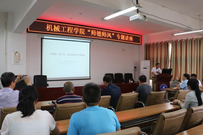 2019年5月29日下午,新葡的京集团35222vip在明远楼512举办了“师德师风”专题讲座。政法学院教授、博士生导师李德宽应邀为新葡的京集团35222vip全体教职工作了“守底线、担大任,做好新时代人民优秀教师”专题讲座。