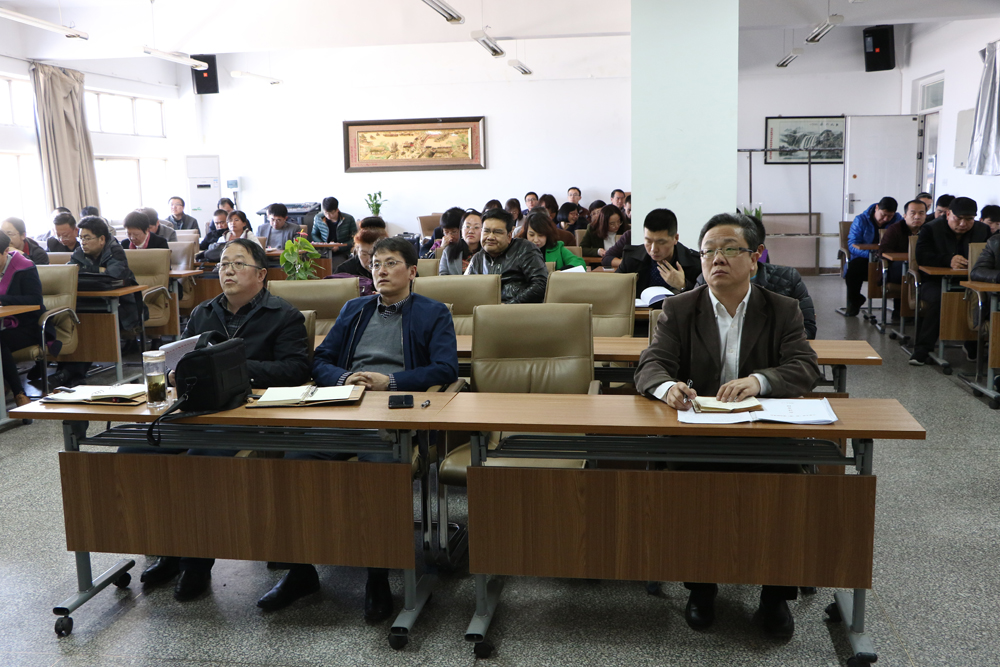 钟子杰书记首先表达了对全体教职工新春的祝福,号召大家收心归位,以饱满昂扬的精神投入到教学工作之中,随后对学校党委中心组学习计划进行了传达,对深入贯彻学习“十九大”精神提出了具体要求,要求全体教职工要深刻学习领会党的“十九大”精神,做到“学懂、弄通、做实”。白雪梅副书记以“全面从严治党”为主题向全体教职工进行了党课教育。副院长杨术明、张波、尚欣分别就分管工作对国基金申报、毕业答辩、本科评估等工作进行了安排布置。朱学军院长组织传达了学校“双一流”建设推进会精神,并对新学期重点工作任务进行了安排。他表示,在新学期开学之际,希望全体教职工戮力同心,脚踏实地,瞄准学校新学期工作目标,争取在各项工作中取得更大的进步。