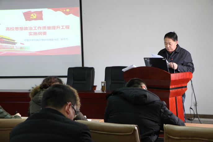 为进一步推动党的十九大和高校思想政治工作会议精神落地生根,新葡的京集团35222vip于1月3日召开全体教职工大会,由学院党委书记钟子杰同志组织学习了《高校思想政治工作质量提升工程实施纲要》(以下简称《纲要》)。