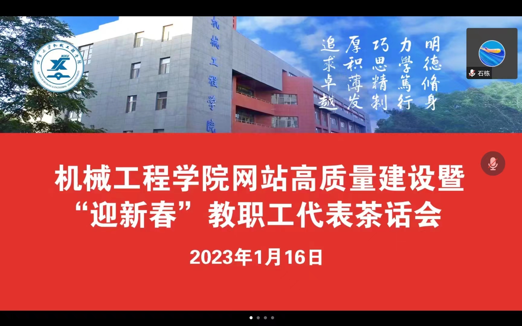 1月16日,新葡京官网线上召开学院网站高质量建设暨“迎新春”教职工代表茶话会,学院党委书记程胜利、副书记何彦平、副院长王昱潭、李宏燕、郝洪涛和教师代表参加会议。