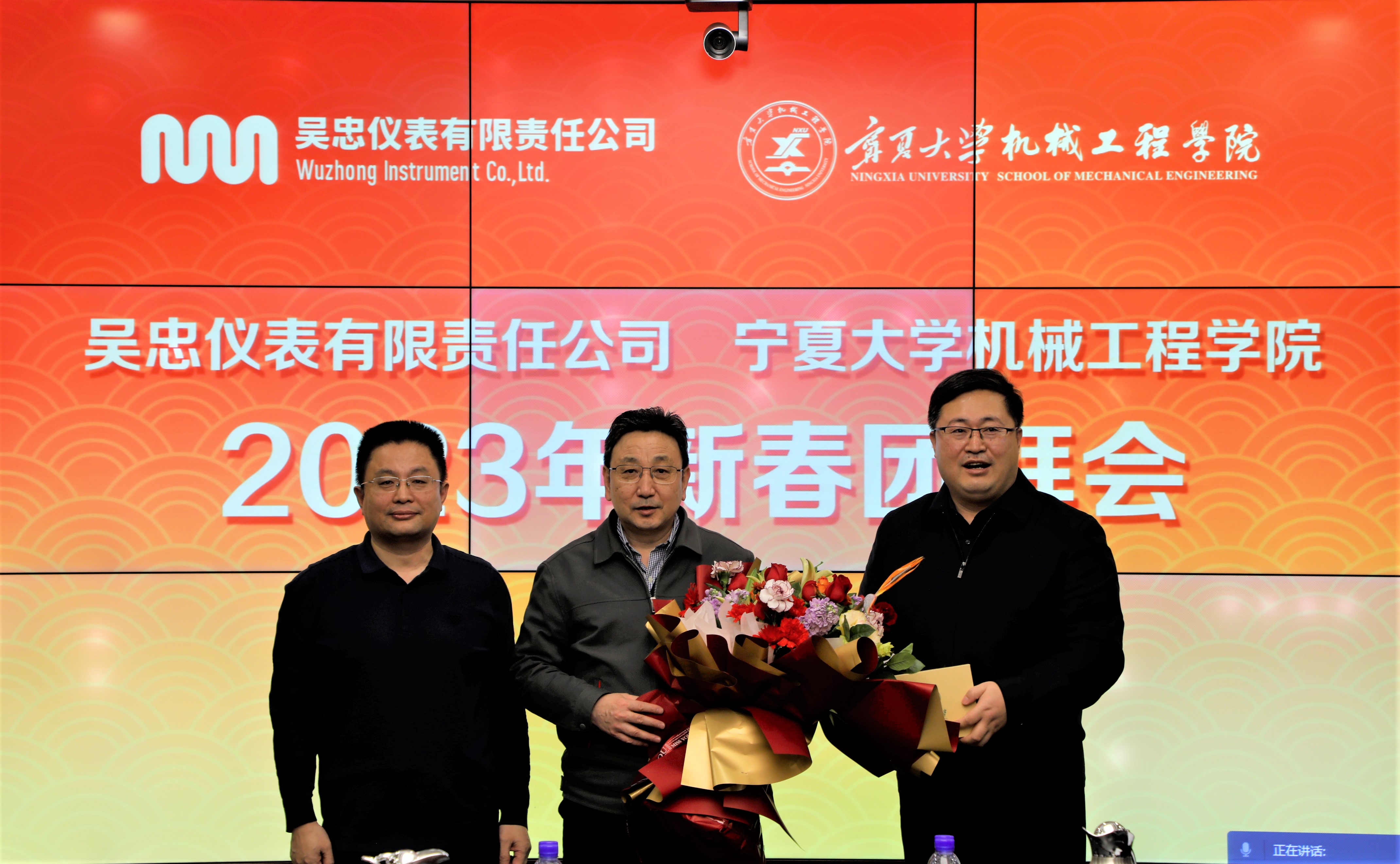 马玉山院士对学院一行来到吴忠仪表有限责任公司表示感谢和欢迎。他讲到,在过去的一年里,学院班子相互配合、全院教职员工抢抓机遇、精诚团结、锐意进取,取得了优异的成绩。他指出,在新的一年里,学院要进一步营造风清气正、干事创业的创新生态,全院教职工要奋发有为,团结协作,在学院班子成员的带领下用钉钉子精神推进工程教育专业认证、博士学位点建设、中外合作办学、国家级教学成果奖培育等重点工作落地见效。学院要进一步加强与相关领域重点企业的紧密合作,建立校外实践基地,探索校企科技创新合作新途径,提高学科建设水平助力学院内涵发展,进一步提升卓越工程师培养质量和层次,逐步增强“机械工程”西部一流学科服务地方经济建设能力。