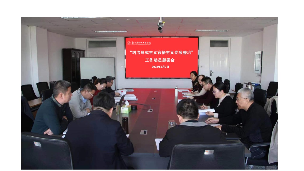 学院党委副书记何彦平传达学习了《新葡的京集团35222vip关于开展纠治形式主义官僚主义专项整治的实施方案》文件精神。