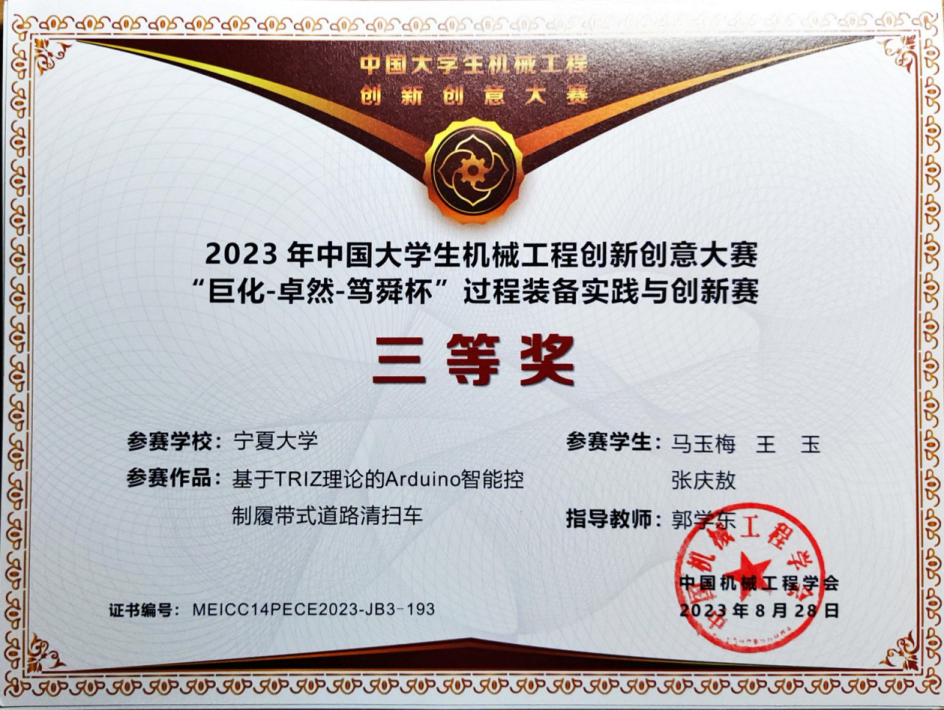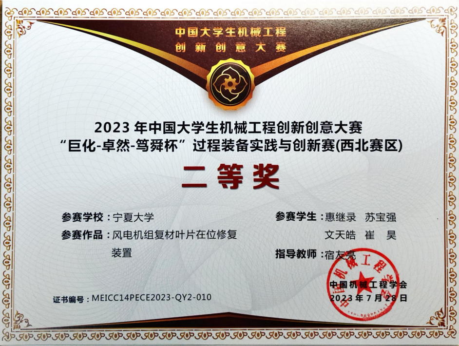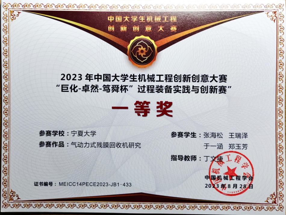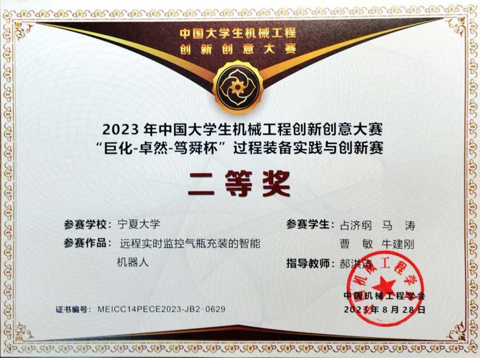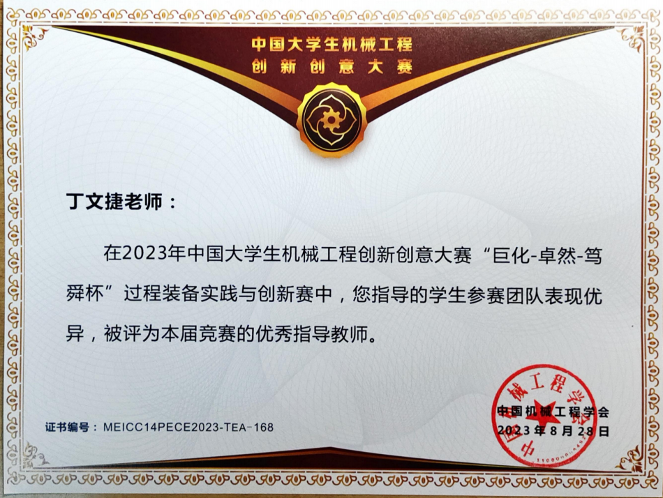 近日,由中国机械工程学会主办的2023年中国大学生机械工程创新创意大赛:“巨化-卓然-笃舜杯”过程装备实践与创新赛(以下简称“过程装备实践与创新大赛”)评选结果正式揭晓,新葡京官网4支本科生队伍参加比赛,喜获一等奖1项、二等奖2项、三等奖1项,1支研究生队伍参加研究生组比赛,获得二等奖。