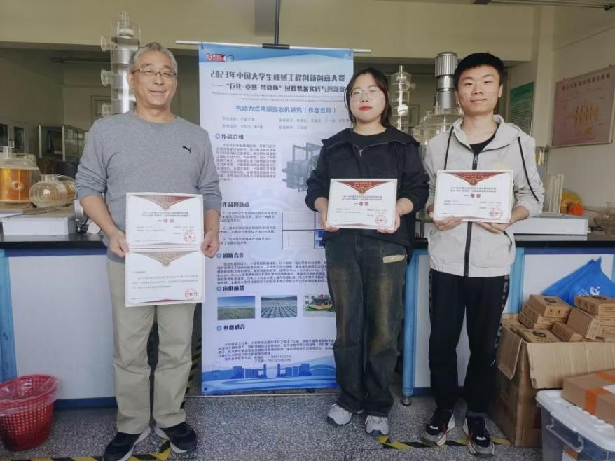该作品针对农田残膜回收,开展气动力式高效集 作品针对农田残膜回收,开展气动力式高效集采方法研究,旨在解决经年残膜碎片化造成的回收难题。通过研究残膜和土壤的不同气吹、气吸特性,设计了利用旋耕刀破土、并将膜土送入旋转翻动的膜土分离装置,分离装置创新运用扁宽风口漩涡风机,实现大面积、长距离吹浮残膜,并借助吸膜风机,实现高效回收碎片化残膜,进而净化农田生态环境和保障粮食稳产条件。