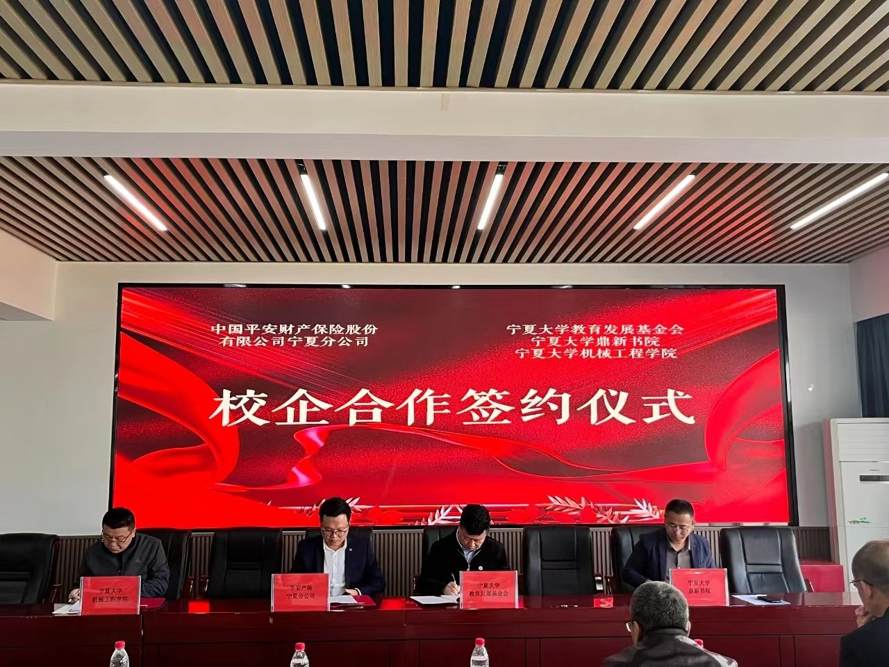 为深入探索校企合作协同育人的有效路径、创新人才培养模式、拓宽学生实习和就业渠道,2023年10月25日下午,平安产险校园宣讲暨校企合作签约仪式在明远楼512室举行。平安产险宁夏分公司副总经理黄建虎、人事行政部经理刘倩、消保部经理盛钢、新葡的京集团35222vip校友总会与教育发展基金会工作办公室主任衡亮、新葡的京集团35222vip党总支副书记兼副院长郝洪涛、鼎新书院副院长何佳出席仪式。