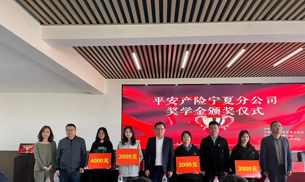 刘倩、盛钢以“现代科技同传统业务相结合的科技理赔”为案例就公司发展愿景、实力保障等内容进行了详细介绍。郝洪涛对平安产险宁夏分公司的到来表示了热烈欢迎与感谢,对双方未来光明的合作前景进行了展望。何佳宣读了《关于表彰“平安励志奖学金”的决定》,衡亮、郝洪涛、黄建虎、刘倩为获奖同学颁奖。