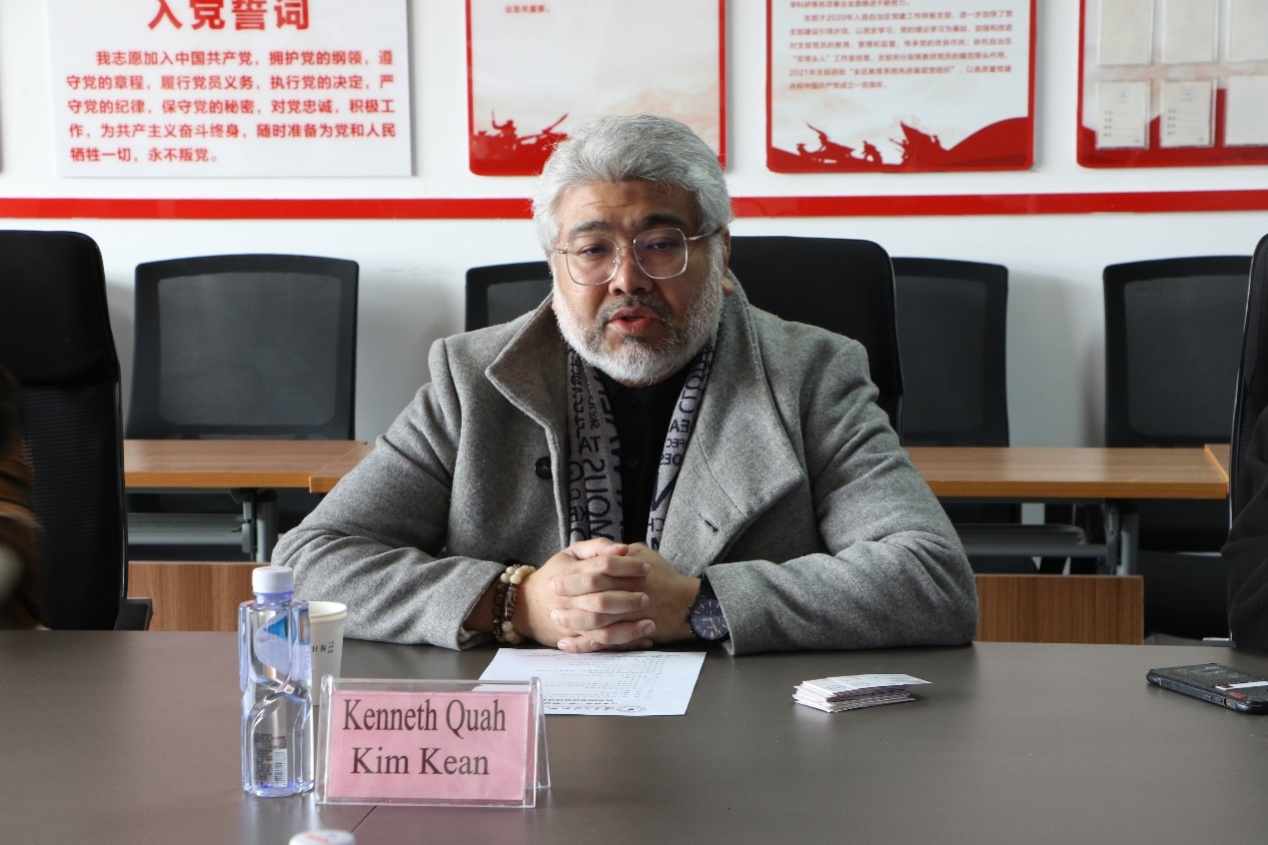12月9日,受马来西亚“一带一路”总商会荣誉会长、马来西亚前首相伊斯迈·沙比利委托,马来西亚“一带一路”总商会理事长兼教育委员会主席柯秦建(Kenneth Quah Kim Kean)教授率代表团到访新葡的京集团35222vip,并与新葡京官网相关部门举行座谈交流,对外合作交流处处长赵亚峰主持座谈会。