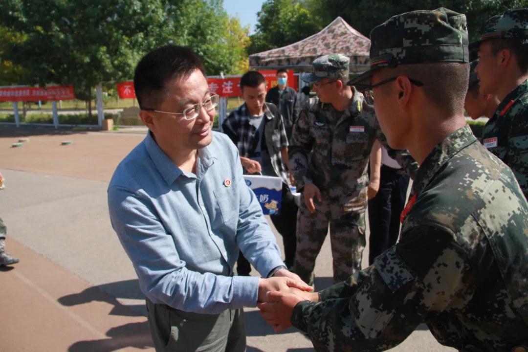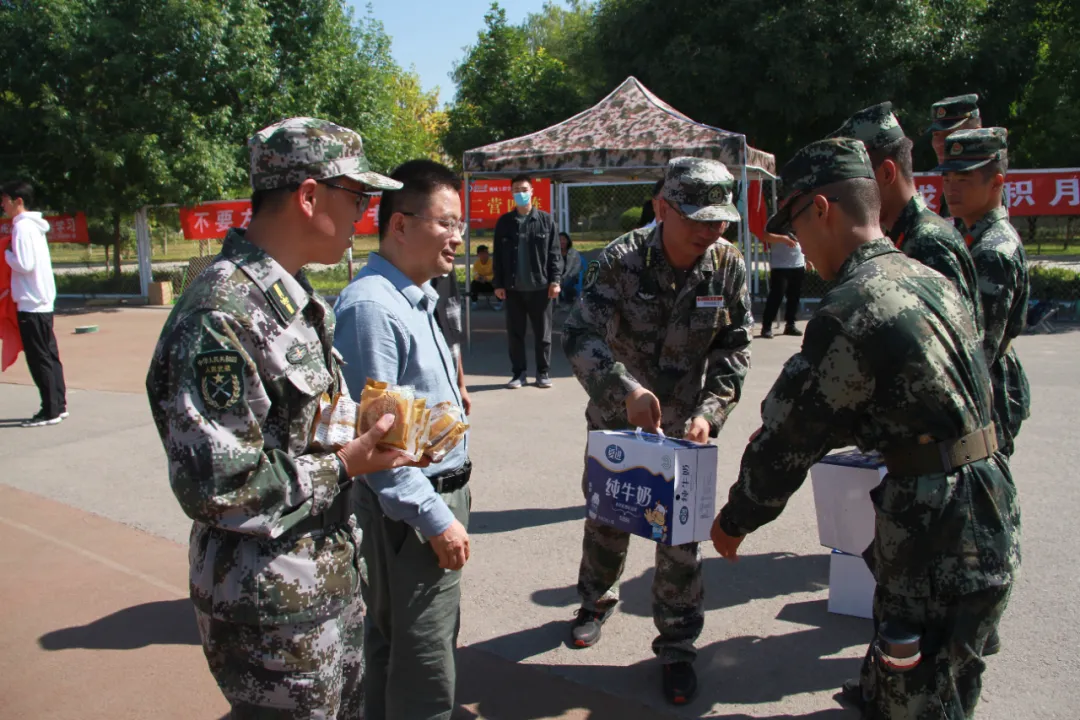 “露从今夜白,月是故乡明”。9月21日中秋佳节当天,2021级新生军训正如火如荼地进行着。新葡的京集团35222vip党委书记钟子杰,院长张波,党委副书记赵亚峰,学院办公室主任刘坤,学生工作办公室主任何佳和21级辅导员石栋深入新生军训场地,给武警部队的教官们以及正在训练的21级新生送去慰问。